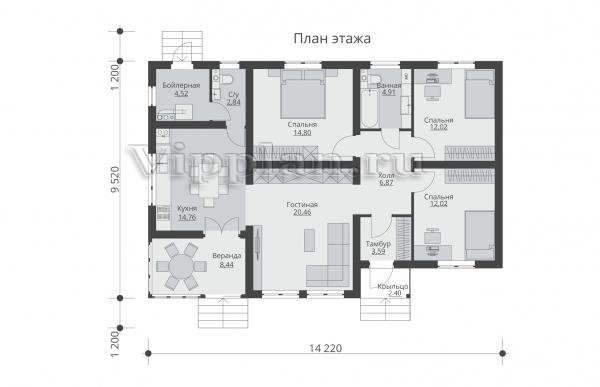 | Размеры дома: | 9.52м×14.22м |