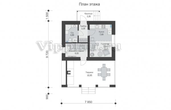 | Размеры дома: | 9.72м×7.58м |